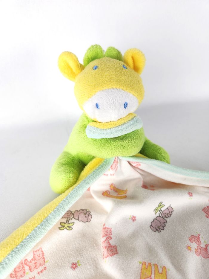 Doudou Plat Vert et Jaune Tête de Girafe/Animal Doux et Brodé Naissance/Bébé - photo numéro 2