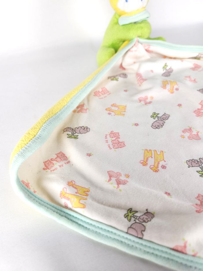 Doudou Plat Vert et Jaune Tête de Girafe/Animal Doux et Brodé Naissance/Bébé - photo numéro 5