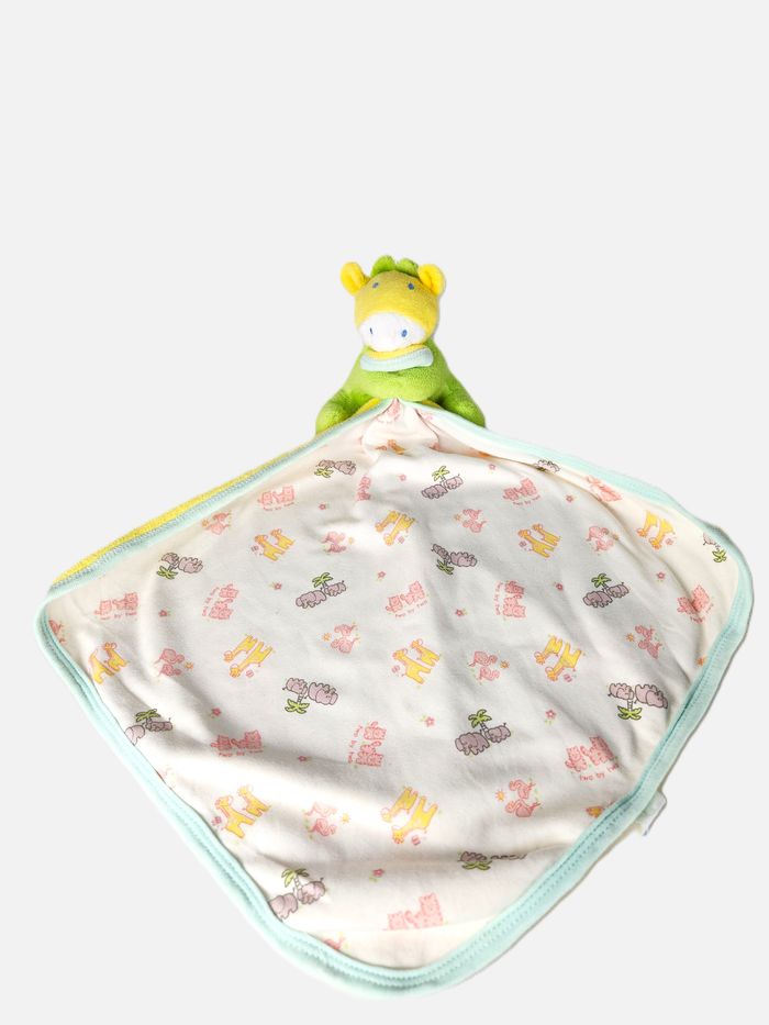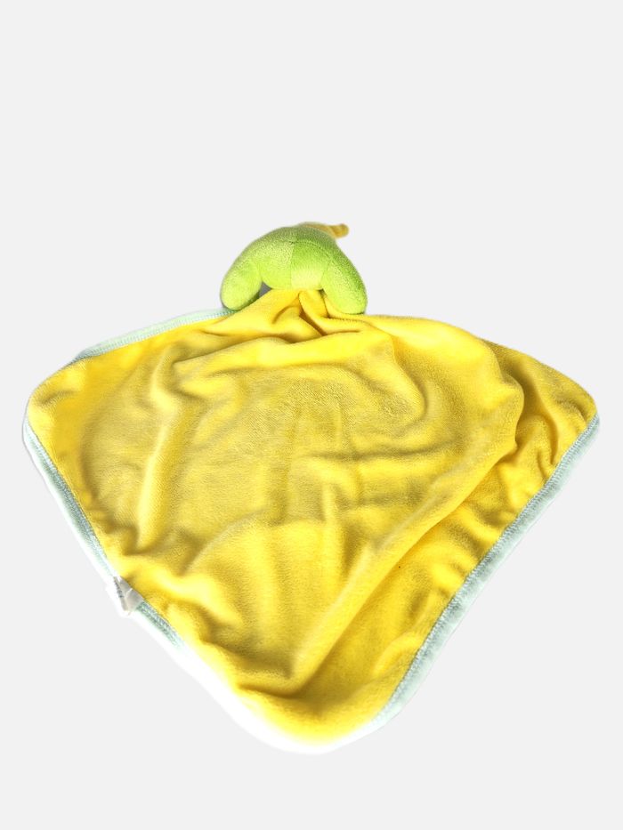 Doudou Plat Vert et Jaune Tête de Girafe/Animal Doux et Brodé Naissance/Bébé