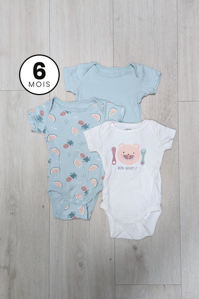 Lot 3 bodies manches courtes - bébé 6 mois - photo numéro 1