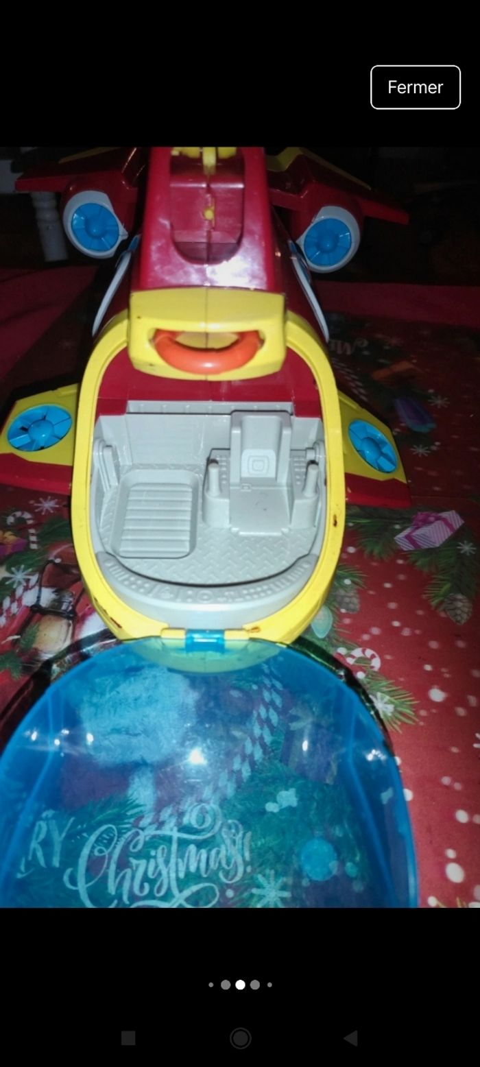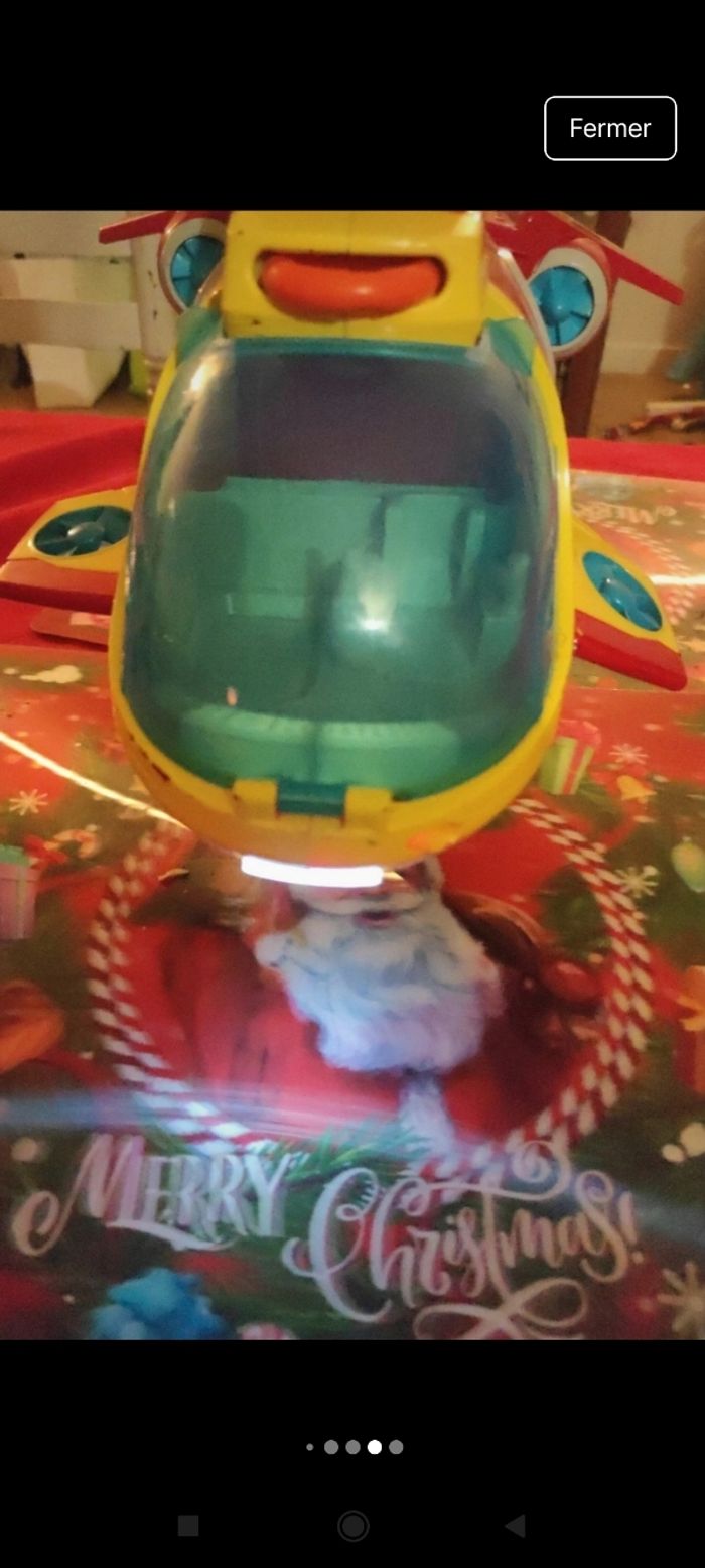 Avion pat patrouille Son et lumière Fonctionne très bien Petite trace usure Avec anneau qui sort quand on soulève en haut J1