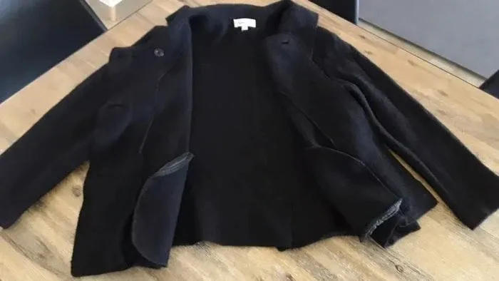 Veste style caban noire en laine véritable. Avec petit col, gros boutons, 2 poches à l'avant. Antonelle. Taille 3 - correspond à une taille L.