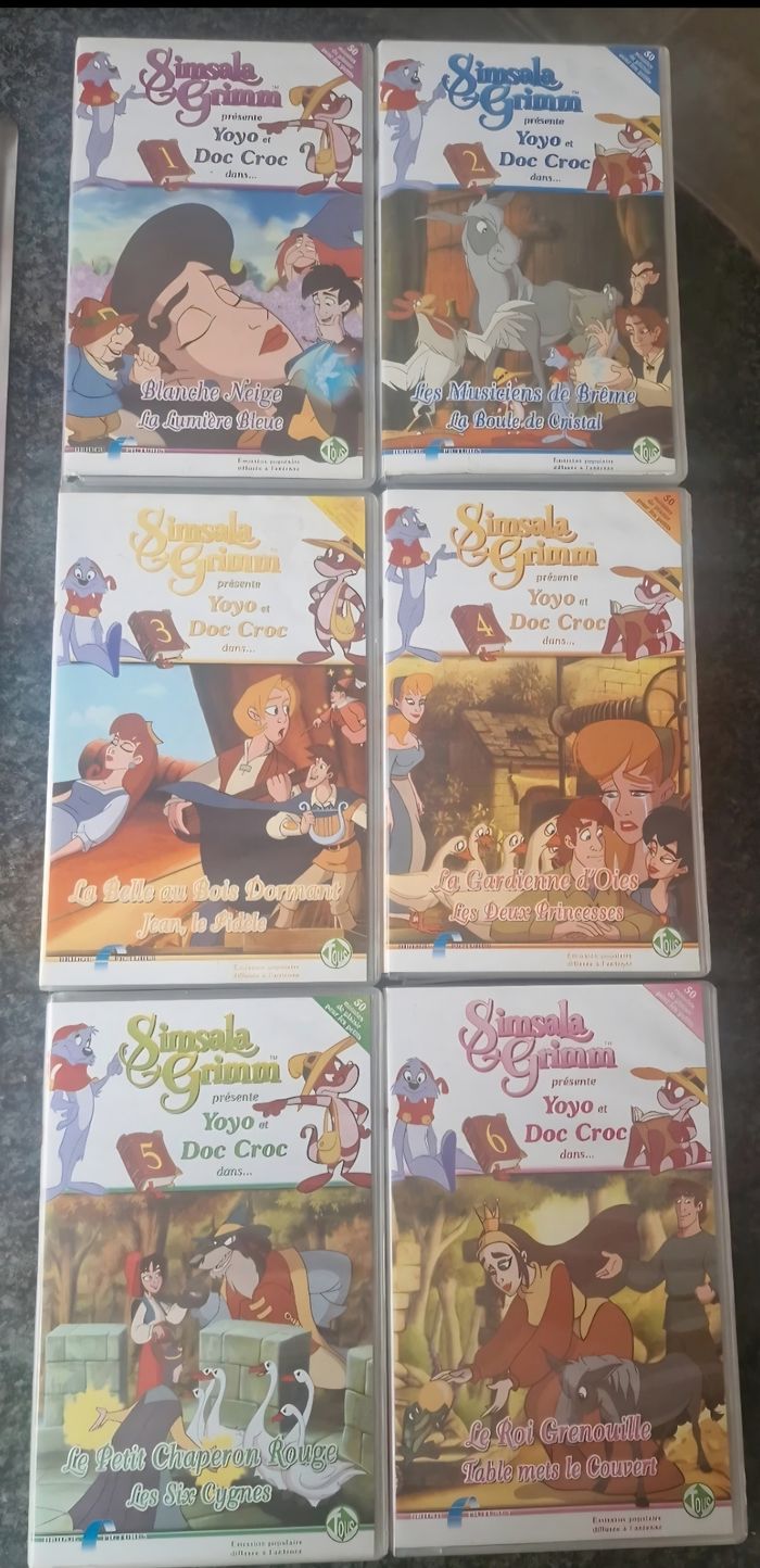 Lot 6 VHS “Simsala Grimm – Yoyo et Doc Croc” – contes des frères Grimm – collection complète rare