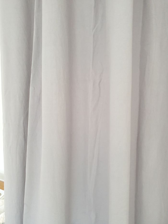 Rideau gris en coton. A oeillets. Il mesure environ 145cmx220cm.