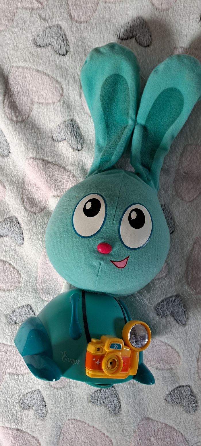 Peluche Jojo lapin et sa caméra magique La peluche interagis avec les enfants en demandant de lever une main face a l'appareil etc.... Par exemple A partir de 1 ans Bon état. Fonctionel, sans boîte. ➡️ D'autres jouets sont également disponibles sur mon profil n'hésitez pas à regarder. 📦 | Envoi rapide et soigné. 💬 | pour plus de renseignements n'hésitez pas à envoyer un message.