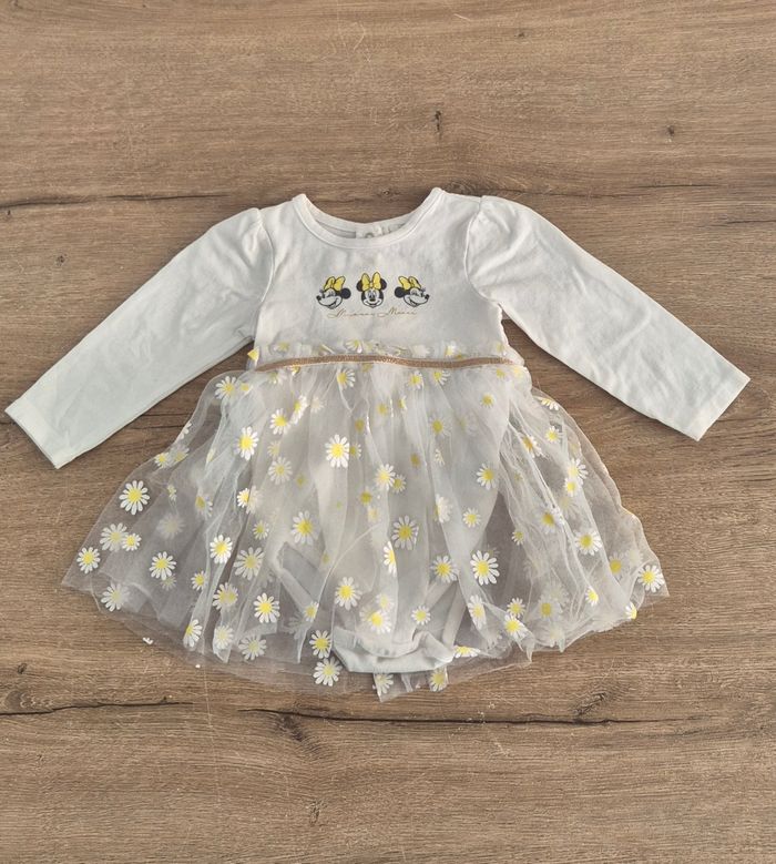 Robe bodie à manches longues avec jupe en tulle à motifs marguerites Minnie de Disney taille 12 mois Très bon état