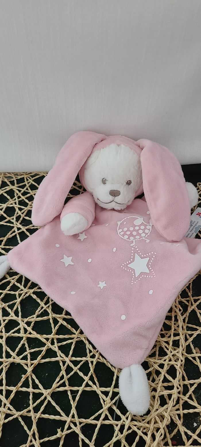 Doudou plat ours SIMBA TOYS losange déguisé en lapin rose luminescent