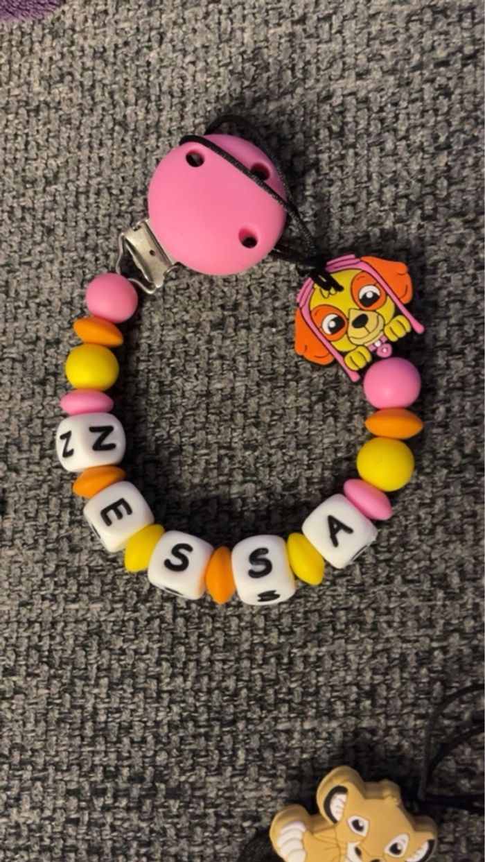 Pour passer la commande il suffit de valider le paiement sur l'annonce du modele désiré et de m'envoyez le prénom de l'enfant par message que je puisse réaliser votre commande. A partir de 2 articles vous bénéficiez de 5% de réduction. Réalisation dans la journée l'adaptateur tétine mam et en supplément à 1€ Si vous souhaitez quelque chose en particulier n’hésitez pas à m’envoyer un message qu’on voit ça ensemble 🥰 Une fois peut être envoyé avant l’envoi bien sûr ☺️