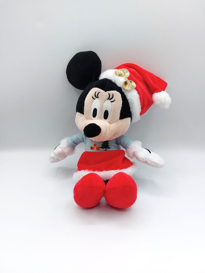 Peluche doudou souris Minnie Noël Disney Simba Toys 30 cm robe rouge sapin nœud doré Parfait état, elle n'a pas servi de doudou A12559 #noel #cadeau #minnie #peluche #doudou