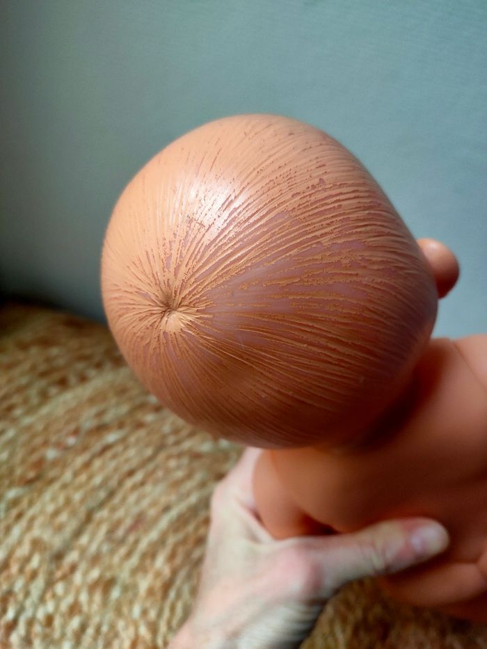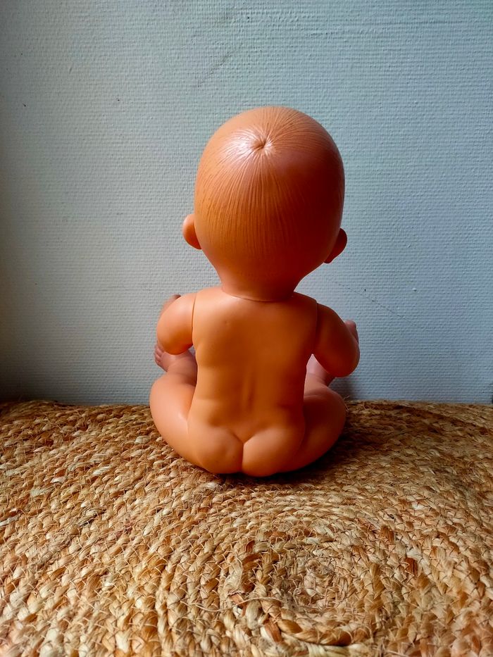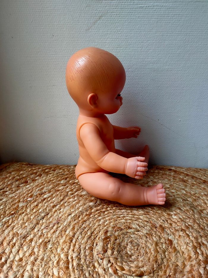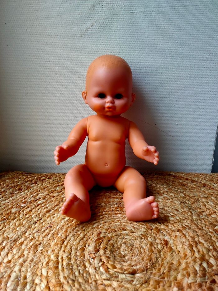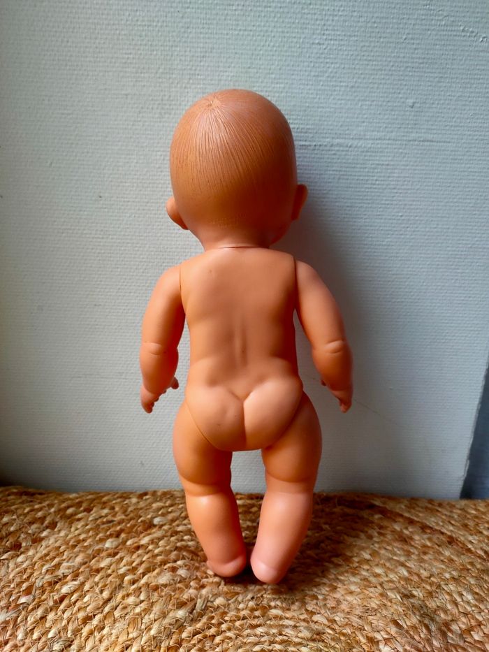 Poupée nue marque PetitCollin de Villac, fabriquer en France. Elle a quelques petits défauts notamment au niveau des cheveux et a une trace sous une oreille. Les défauts sont en photos. La poupée reste tout de même en très bon état.