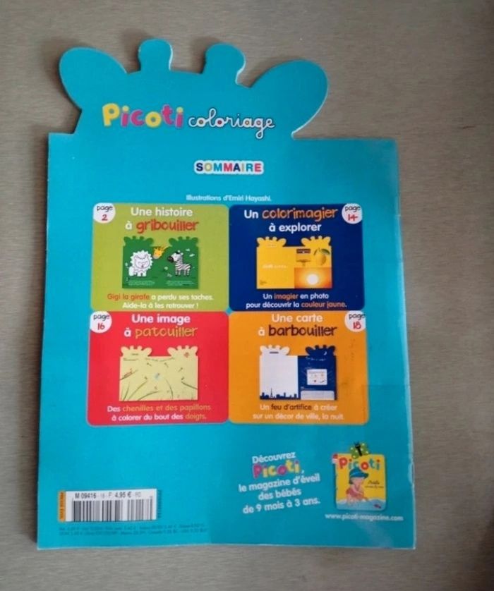 Bonjour Je vends un magazine Picoti . Le magazine est neuf et n'a jamais été utilisés . - Picoti : Ma savane à colorier avec Gigi la girafe Âge : 1 à 3 ans Prix : 1€ Merci