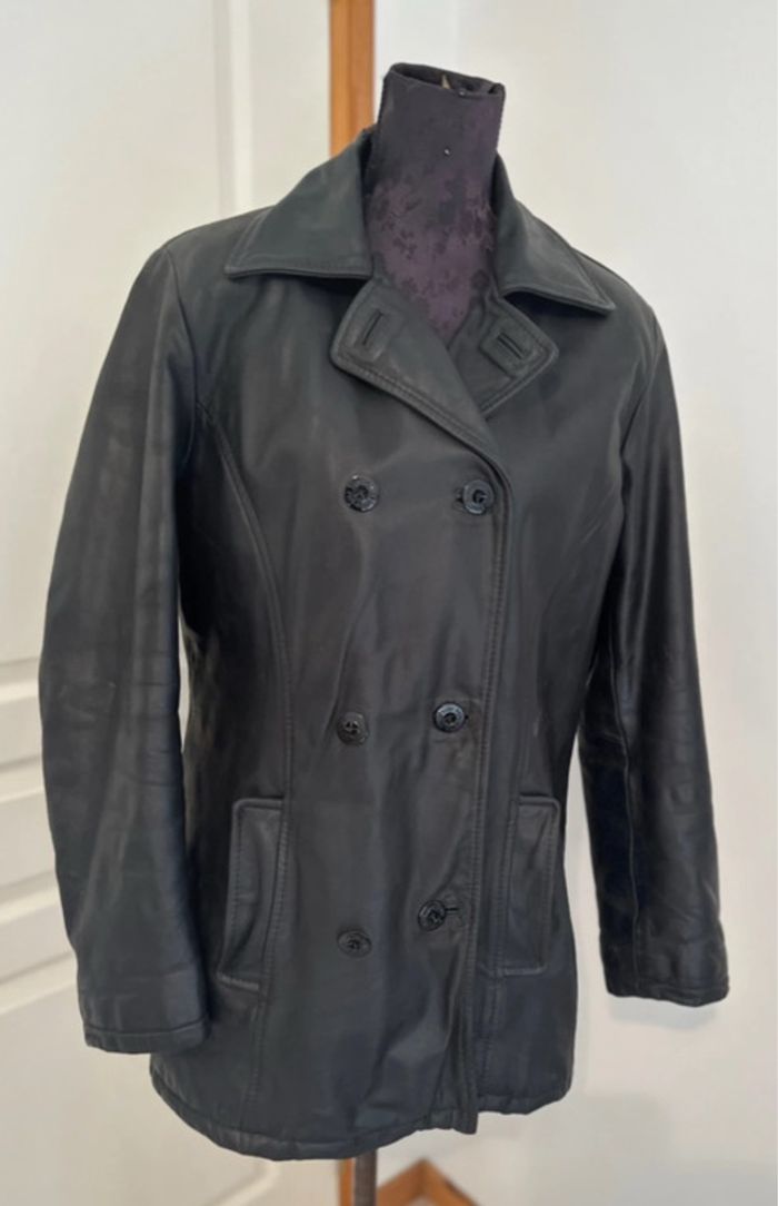 Magnifique caban en cuir Pépé Jeans taille L. Dimensions à plat : Épaules : 44 cm Aisselles : 55 cm Hauteur totale : 77 cm environ #cuir #cuirveritable #cuirnoir #pepejeans #remisesurleslots #mixte