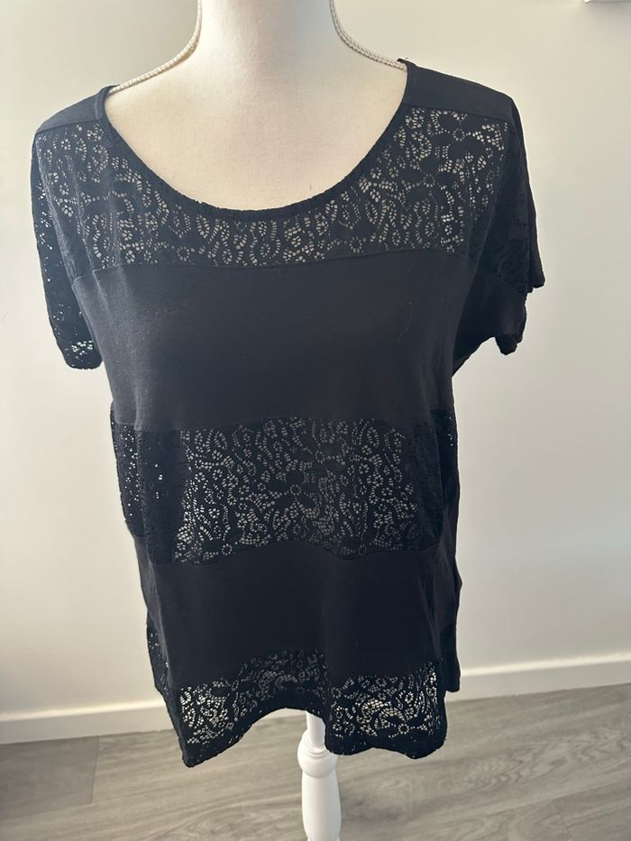 T-shirt noir en dentelle gothique H&M T38 M - photo numéro 2
