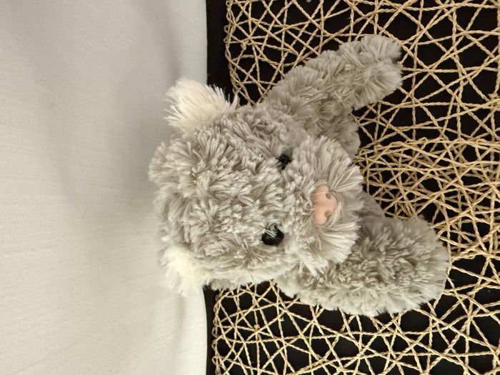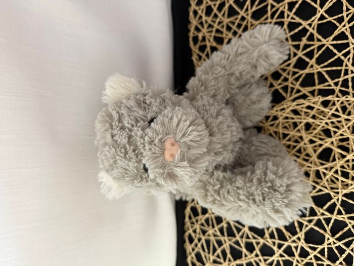 doudou chat bouclettes gris blanc nez rose - photo numéro 1