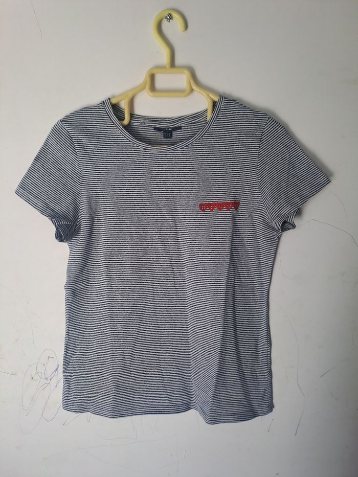 Tee-shirt à rayure "Bisou" Kiabi Taille S - photo numéro 1