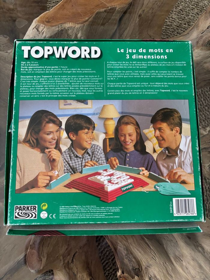 Jeu de société éducatif Topword Parker Edition 1994 A partir de 10 ans 2 à 4 joueurs Jeu en très bon état. La boîte est elle abîmée (cf photos) N'hésitez pas à faire des lots 🍀 Réduction dès 2 articles Pour voir mes autres jouets : #jouetsludi2607 📩 Pas de remise en main propre