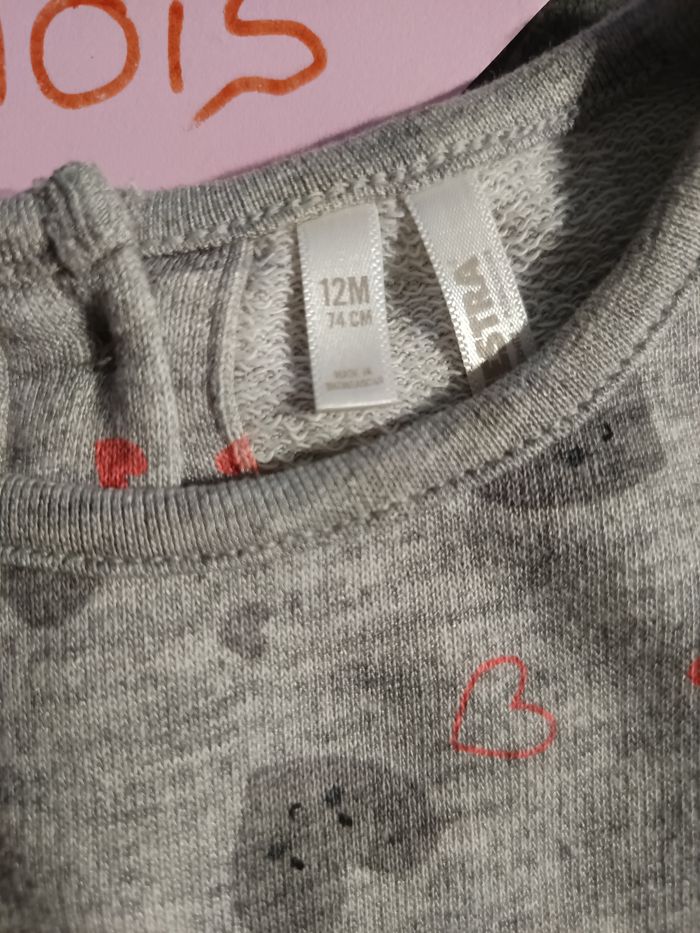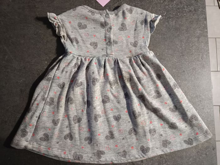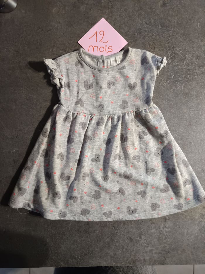 Robe manches courtes grise avec petits coeurs, Matière sweat, Peu se porté avec un sous pull/t-shirt manches longues ou bien sans. NEUVE jamais portée ! Taille 12 mois
