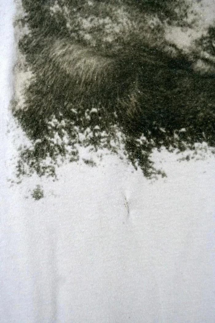 Tee shirt écru manches longues marque Zara taille 6/7 ans, motif tête de biche légèrement pailleté, un petit trou en dessous du motif reprisé cf 2 eme photo 90g
