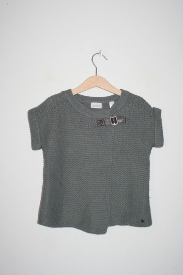 Gilet gris manches courtes marque Okaidi taille 6 ans, bien porté donc un peu bouloché, fermeture par une pression en haut, 195g