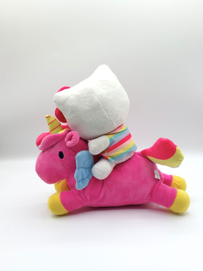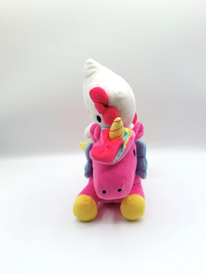 Peluche doudou Hello Kitty licorne rose SANRIO SIMBA TOYS 30 cm coloris rose bleu jaune blanc Très bon état, propre - velours blanc marqué (photo 8) et petites traces noires sur 1 patte (photo 9) Envoi rapide Réf A12556 #noel #jouet #cadeau