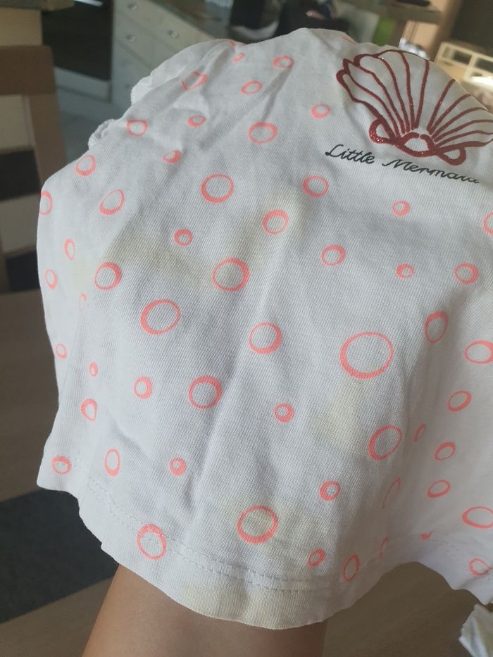 A vendre lot de 3 tee shirt manches courtes, taille 6 mois. Marques Sergent Major, TAO et Grain de blé. En bon état mais petites tâches jaunes dû aux renvois de biberon non frottées avant lavage sur 2 d'entre eux à détacher (voir photo). Vendu 2€ l'ensemble. N'hésitez pas à jeter un coup d'œil sur mon dressing (d'autres vêtements en vente). Une réduction dès 2 articles achetés !