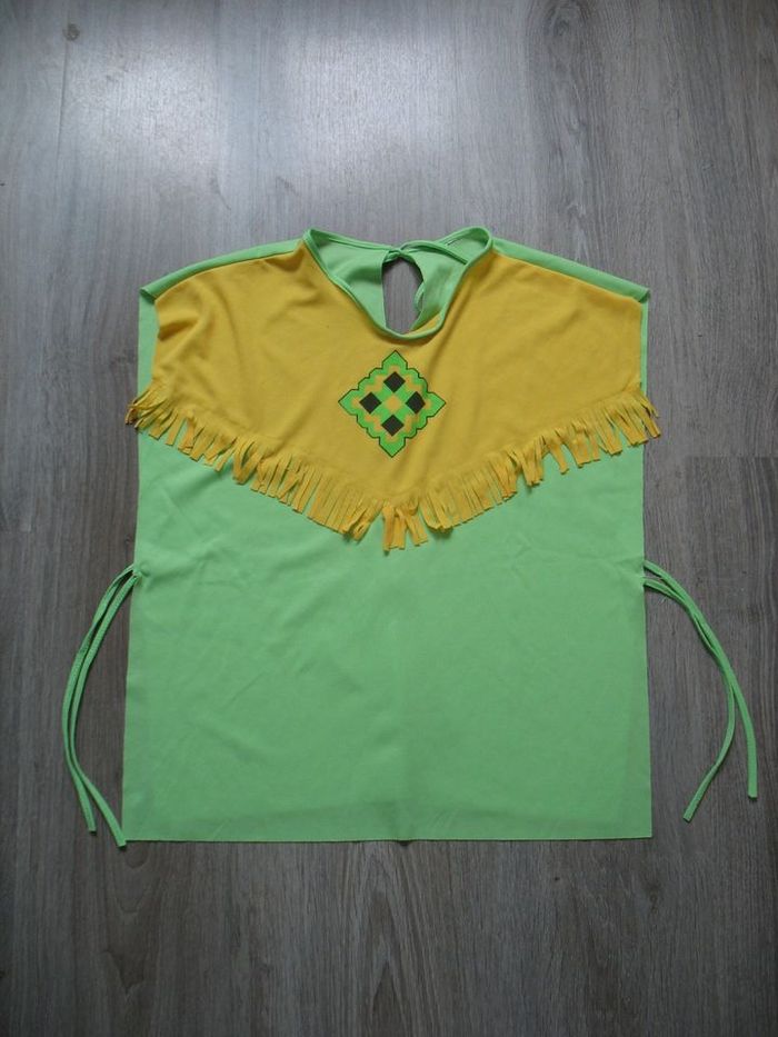 #Déguisements_Jouets_Nathg2210 DÉGUISEMENT : HAUT VERT ET JAUNE INDIEN - 5 / 6 ANS - n°10 Haut vert et jaune qui se passe par la tête - S'attache sur le côté - Franges jaunes - Lien dos. Article d’occasion en très bon état - Sans trou - Ni tache - Lavé et repassé pour la vente. Possibilité d'envoyer d'autres photos sur simple demande. Maison non-fumeur - Sans animaux. Réduction lot activée. Allez voir mes autres ventes, je vide les placards. Beaucoup de vêtements de marque et beaucoup de jouets. Remise en mains propres ou possibilité d'envoi au tarif en vigueur à votre charge. Retour Refusé. Pour tout renseignement, n'hésitez pas à me contacter, je répondrai volontiers à vos questions. Réponse Assurée. Pour Consulter mes autres annonces tapez Nathg2210.