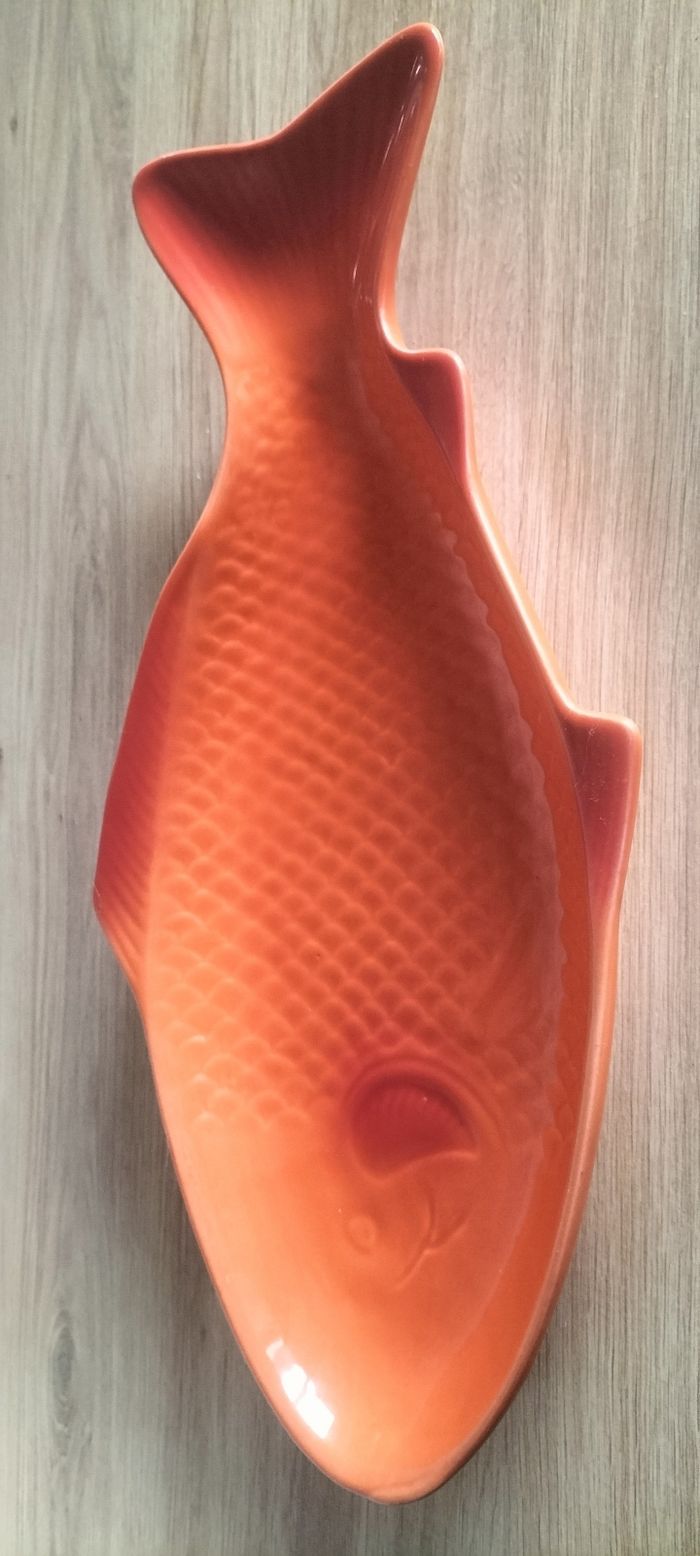 plateau de service en forme de poisson de couleur orange. - Type de produit : Plateau de service - Matière : Autre - Couleur : Orange Très bon état jamais servi 38 cm 15 €