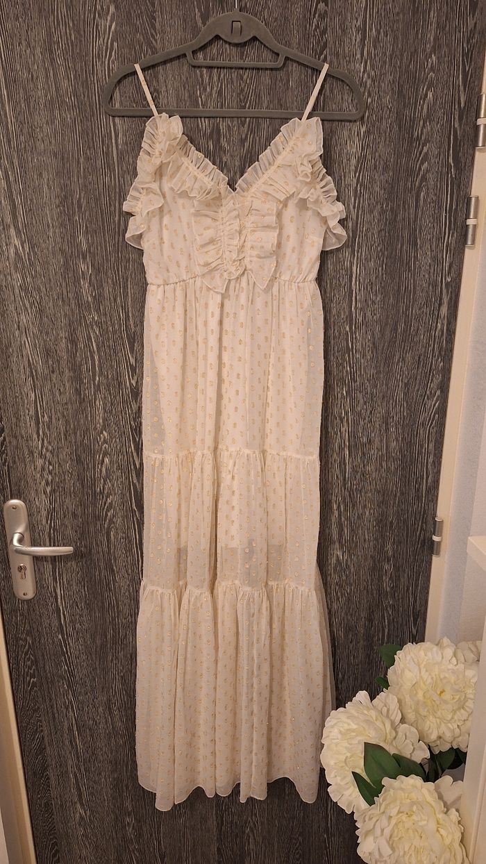 Robe longue bohème à bretelles blanche et dorée - photo numéro 2