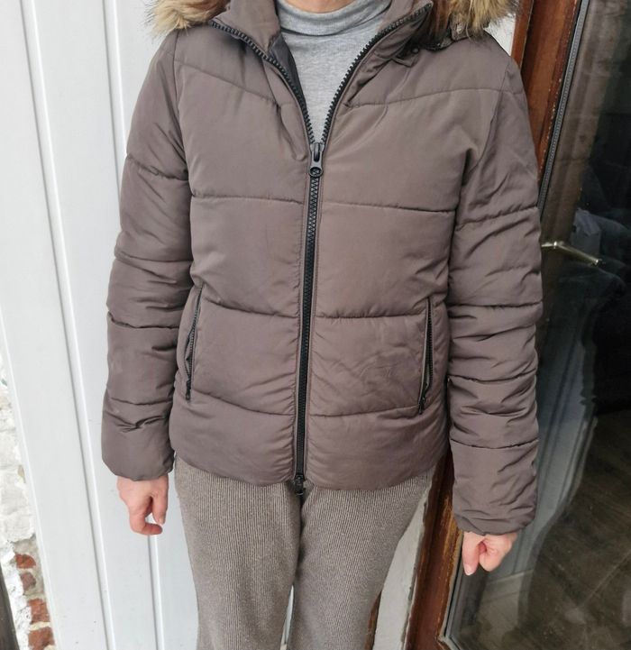 Doudoune blouson  brun col fourrure - photo numéro 2