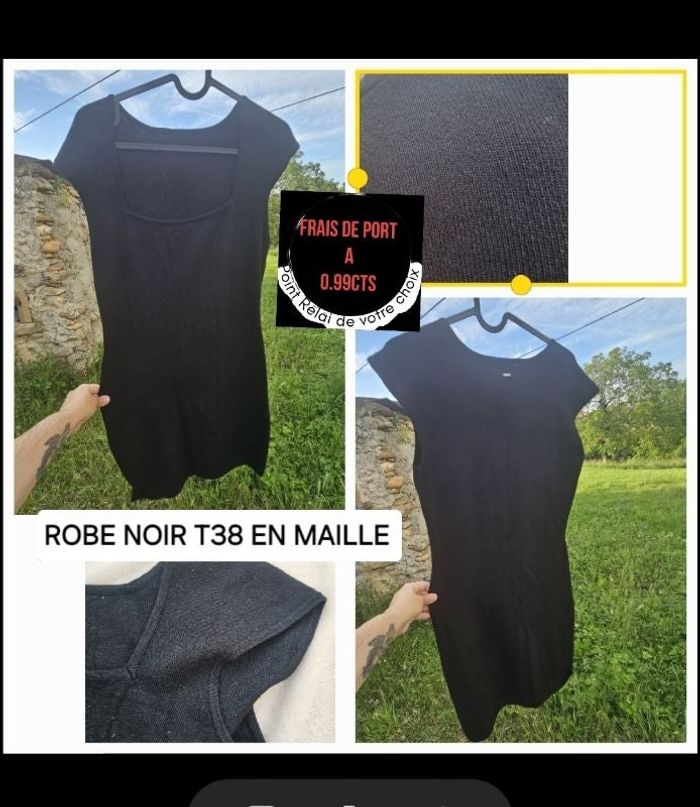 Vends robe type maille T 38 de couleur noir Idéal pour les beaux jours qui arrivent. Les vêtements sont lavés donc propre, sur les photos prises après lavage donc vêtements peuvent être froissé, rien grave.Maison sans sans animaux et non fumeur Envoi soigné et rapide max 48h ( sauf le week-end colis déposé le lundi) Possible de réduire les frais de port à 0.99cts des 2 articles pensez à jeter un coup d'œil dans mon dressing...Pleins d'autres articles 📚 Abonnez-vous pour ne pas louper les nouveaux articles mis en ligne. Sans étiquette