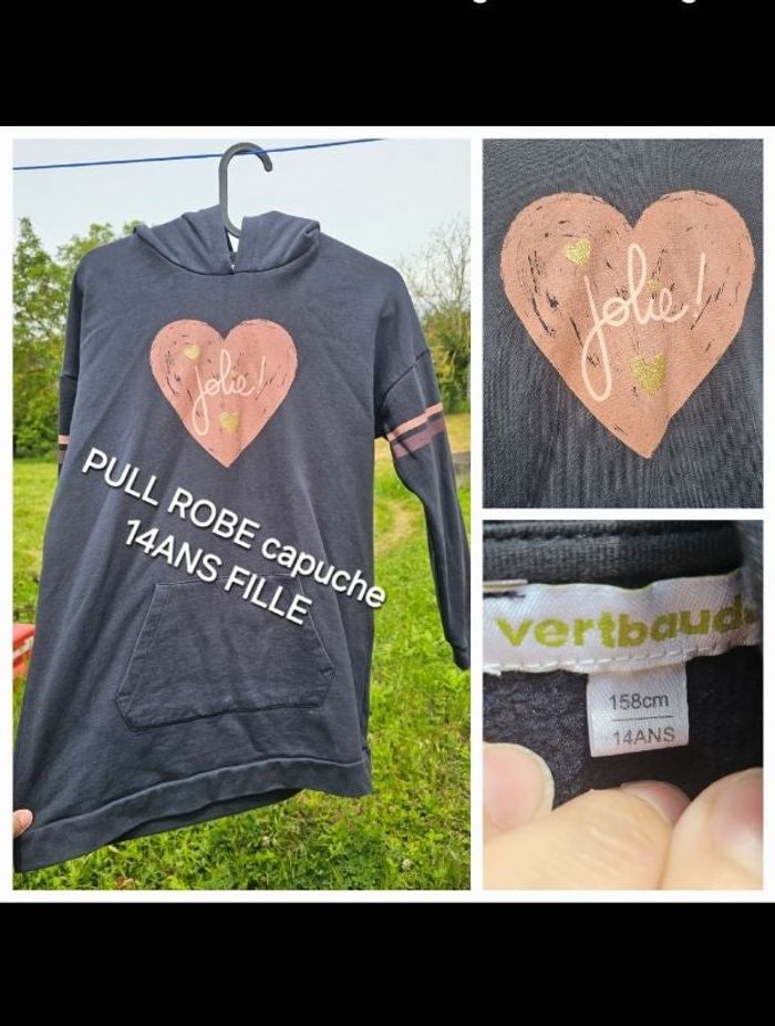 Vends ce pull robe ( sweat à capuche long ) taille 14 ans vertbaudet PAS DE TROUS Hyper confortable et agréable à porter. Maison sans sans animaux et non fumeur Envoi soigné et rapide max 48h ( sauf le week-end colis déposé le lundi) Possible de réduire les frais de port à 0.99cts des 2 articles pensez à jeter un coup d'œil dans mon dressing...Pleins d'autres articles 📚 Abonnez-vous pour ne pas louper les nouveaux articles mis en ligne.