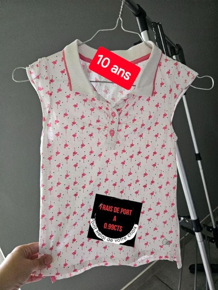 Vends ce Tee-shirt type polo manche courte motif flamant rose 🦩 Taille 10 ans fille PROPRE (LAVÉ) - PAS DE TROUS Maison sans sans animaux et non fumeur Envoi soigné et rapide max 48h ( sauf le week-end colis déposé le lundi) Possible de réduire les frais de port à 0.99cts des 2 articles pensez à jeter un coup d'œil dans mon dressing...Pleins d'autres articles Abonnez-vous pour ne pas louper les nouveaux articles mis en ligne. Toute Petite tâche sur le Col voir photo