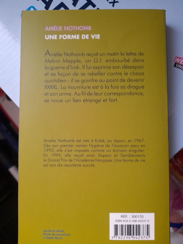 Roman d'amélie nothomb: une forme de vie.en très bon état.