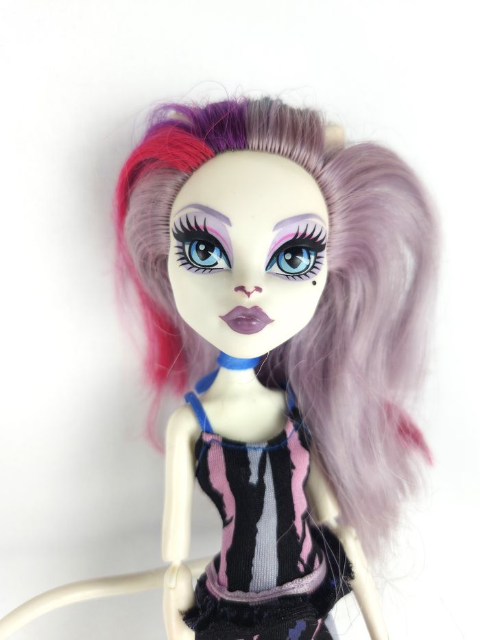 Poupée de collection Monster High, personnage de Catrine DeMew. Cette version fait partie de la collection Scaremester (L'Émestre des Monstres), où les poupées portent leur tenue de rentrée ou de cours. Marque : Monster High Personnage : Catrine DeMew Collection : Scaremester Année : 2011 (Mattel) Dimensions : Environ 27 cm de hauteur Détails : Cheveux violets/roses, queue et chaussures violettes. État : Très bon état général. 📦 Expédition rapide et soignée sous 24 à 48 heures ouvrées. 🚚 N'hésitez pas à consulter mes autres articles en vente pour bénéficier d'un envoi groupé. Ref:A
