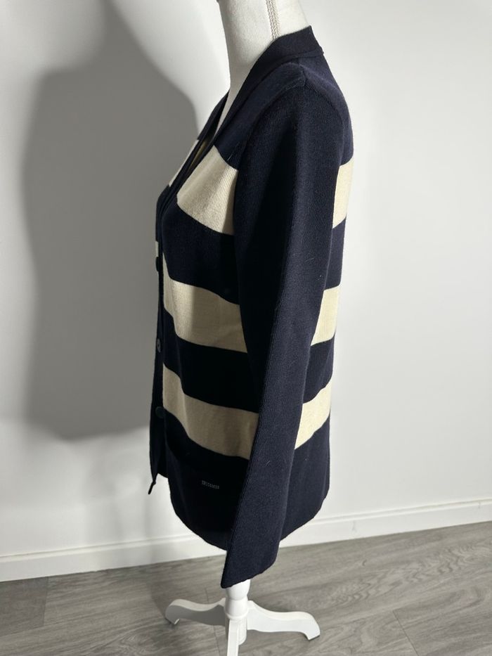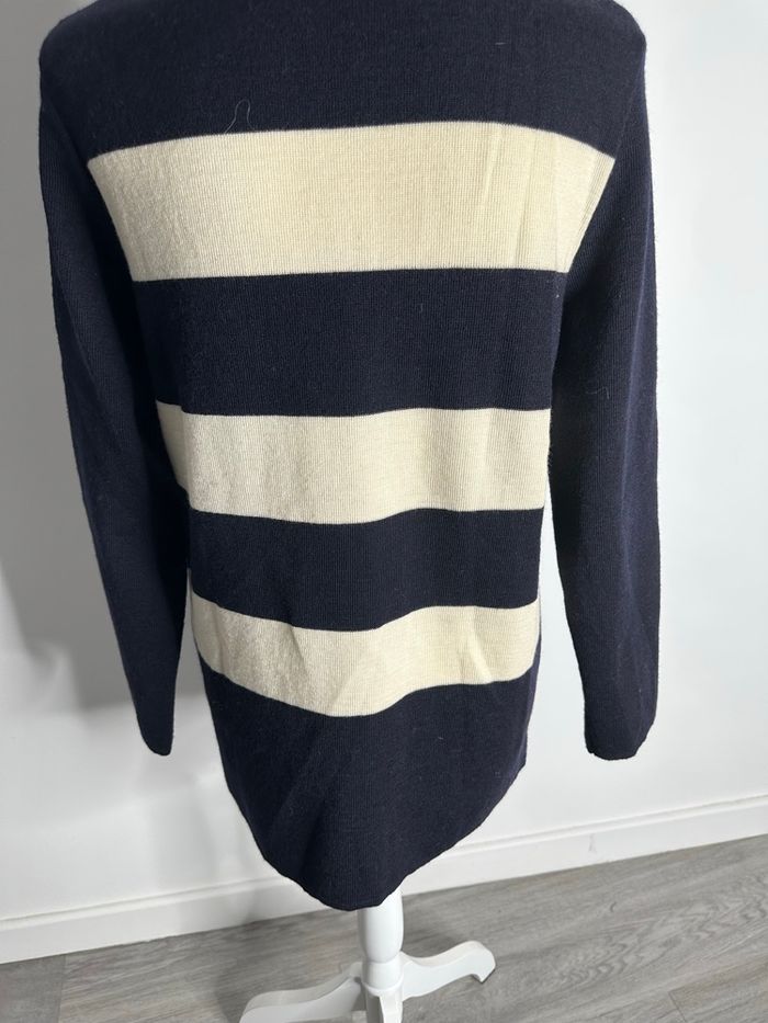Cardigan marinière blanc crème et bleu marine laine vierge Tricomer Vintage T42/44 XL/XXL