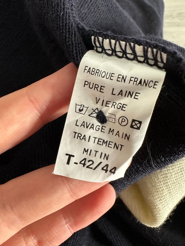Cardigan marinière blanc crème et bleu marine laine vierge Tricomer Vintage T42/44 XL/XXL - photo numéro 9