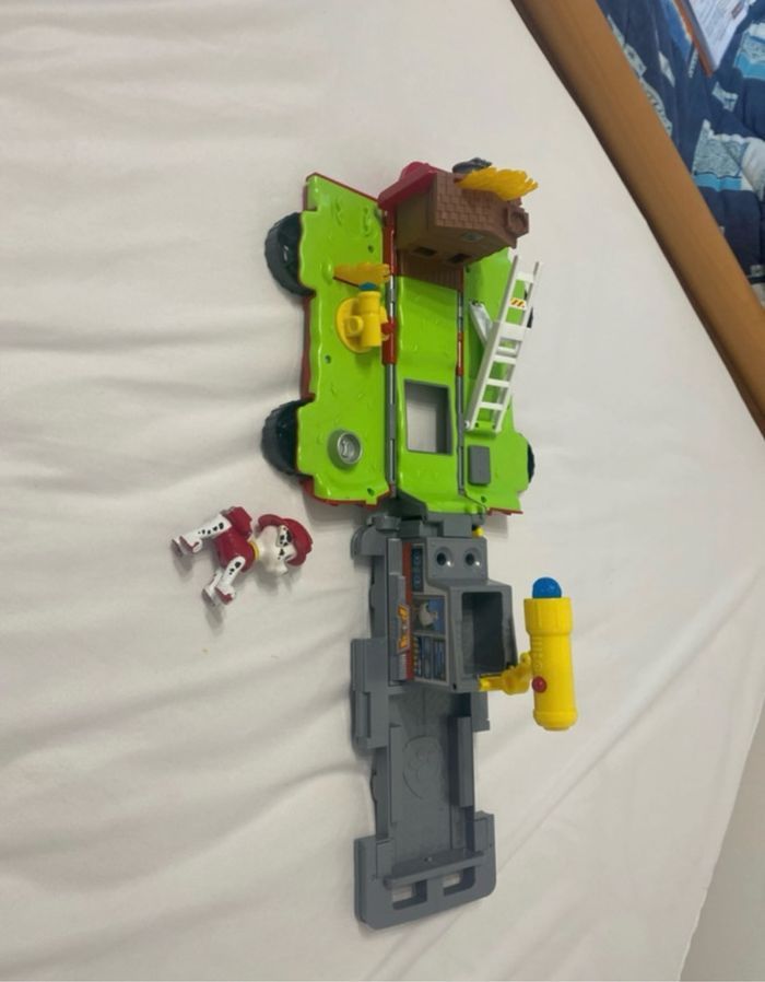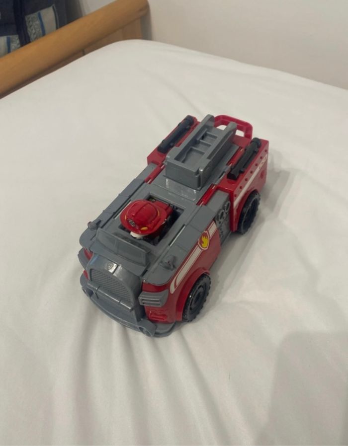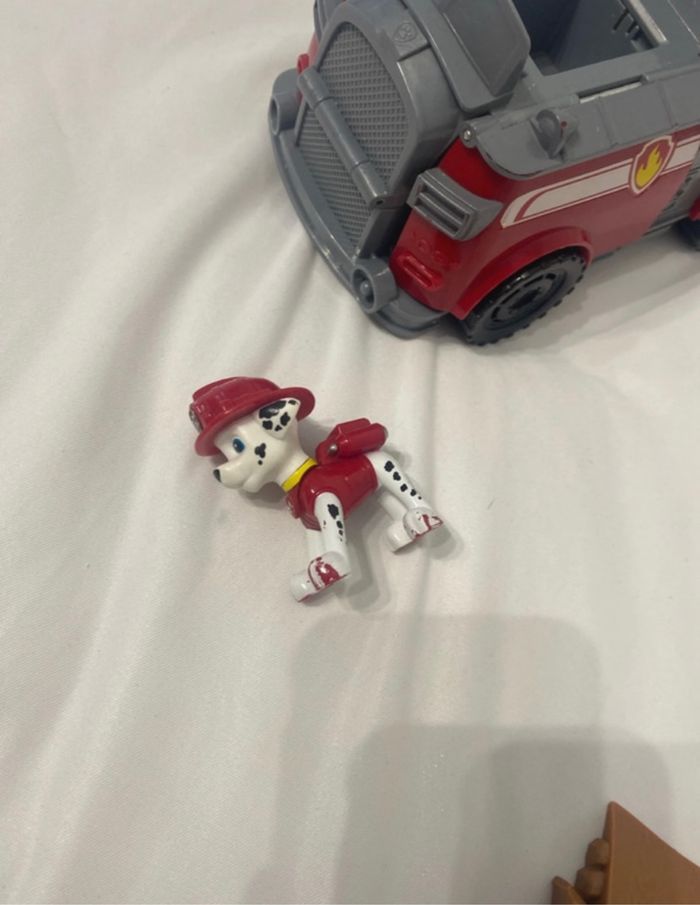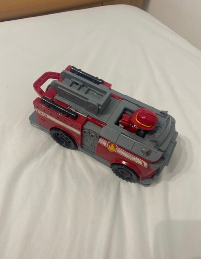 Camion de la Pat’Patrouille avec le personnage Marcus, camion de pompier peinture un peu effacé au niveau des Pattes