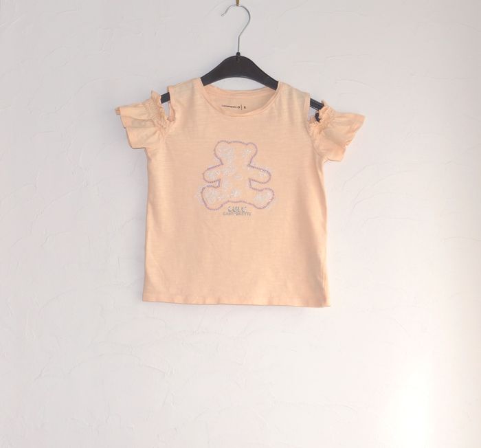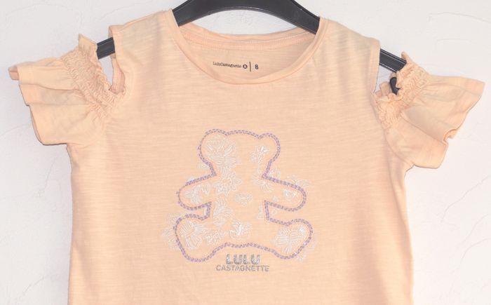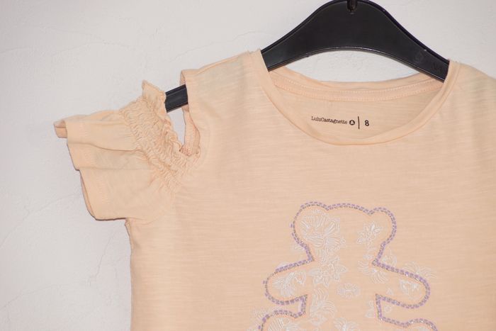 Motif ourson sérigraphie et paillettes Manches ouvertes et smockées Dos uni Lulu Castagnette by Gémo