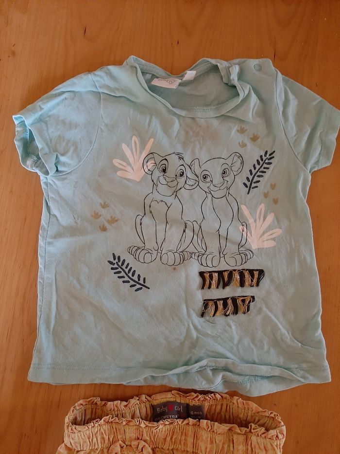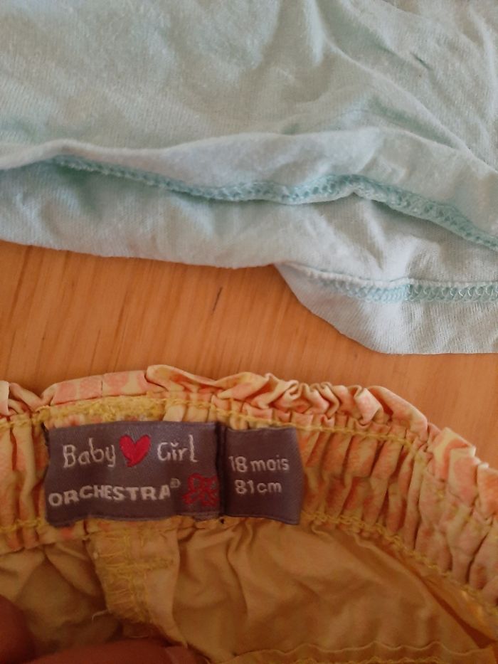 Bonjour ☀️ Je vends ce t-shirt et ce short en tres bon etat. 📍Taille: 18 mois ⭐ Marque: t-shirt DISNEY , short ORCHESTRA ✅ Portés quelques fois 🚫 Maison non fumeur et sans animaux ♻️ Utilisation de lessive maison er écologique Bonne journée et bon shopping 👋🏽😊 N'hésitez pas à regarder le dressing et faire des lots pour économiser vos frais de port 👍🏽