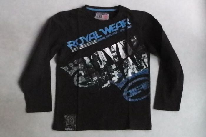 Maillot manches longues, noir imprimé bleu "royal wear" taille 14 ans