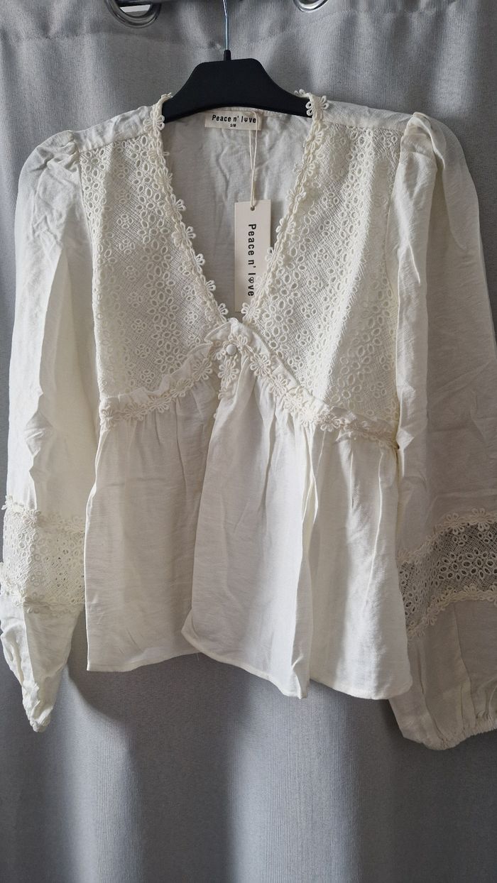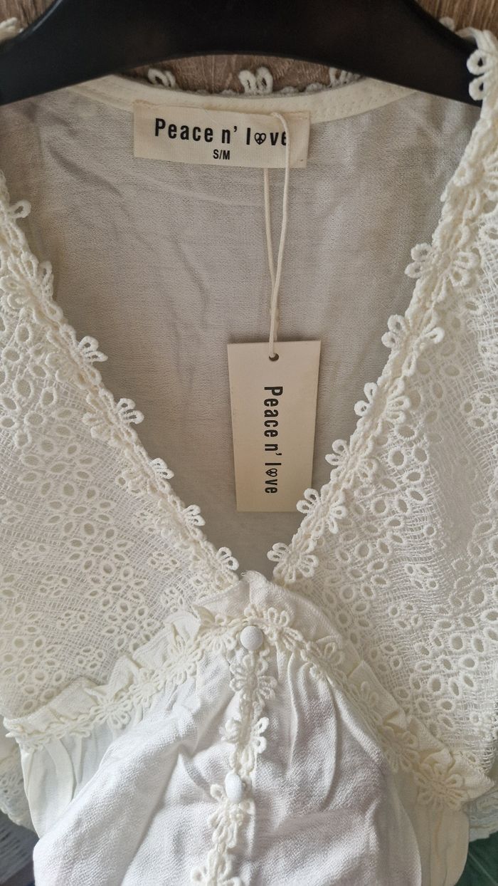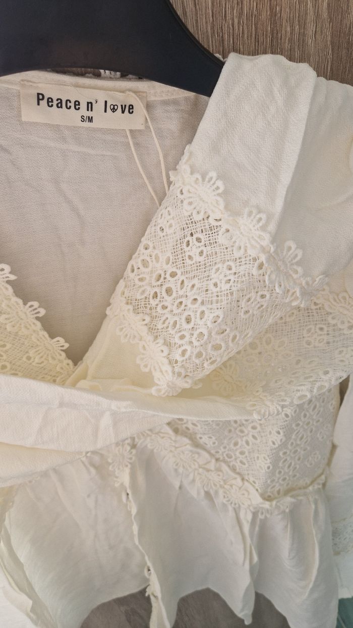 Superbe blouse blanche Peace n' Love taille S/M, au style romantique et bohème 🌸 Détails en dentelle délicate, coupe fluide et légère, parfaite pour un look féminin et naturel. Idéale pour un festival ou une sortie casual chic 🤍 💫 En excellent état / jamais portée (étiquette encore présente) 🌿 Matière douce et agréable à porter 🧺 Facile à assortir : jean, jupe ou short 📦 Envoi rapide et soigné #blousebohème #blanche #dentelle #romantique #peacenlove #stylebohochic