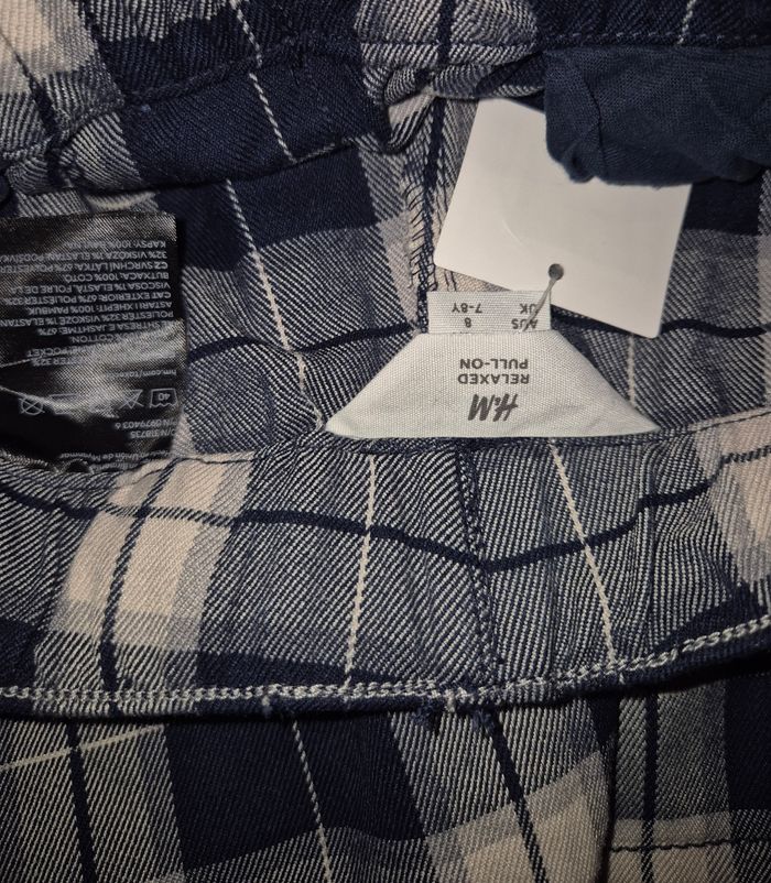 ▪︎Pantalon Relaxed pull-on ▪︎A carreaux bleu et blanc ▪︎Neuf avec étiquette ▪︎Avec poches et cordon ▪︎Bonne qualité ▪︎H&M ▪︎Prix neuf 17,99 ▪︎Taille 128 8 ans