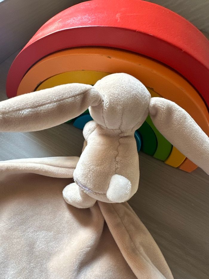Doudou Lapin mouchoir beige marron nez rose Jellycat - photo numéro 4