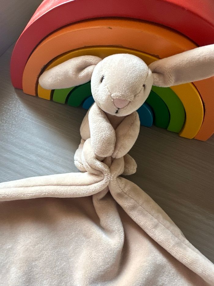Doudou Lapin mouchoir beige marron nez rose Jellycat - photo numéro 1