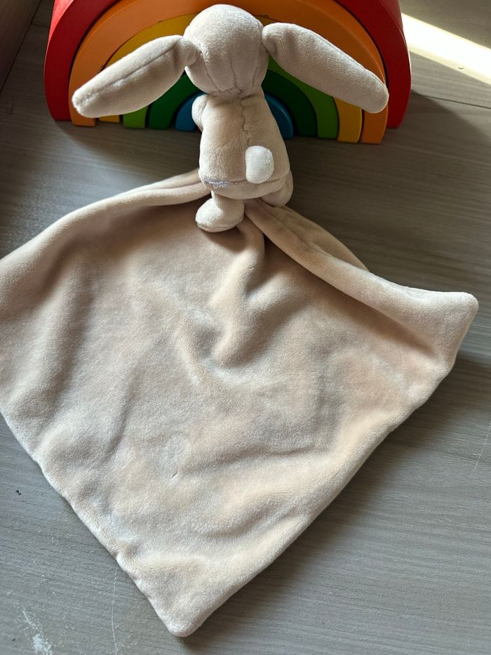 Doudou Lapin mouchoir beige marron nez rose Jellycat
