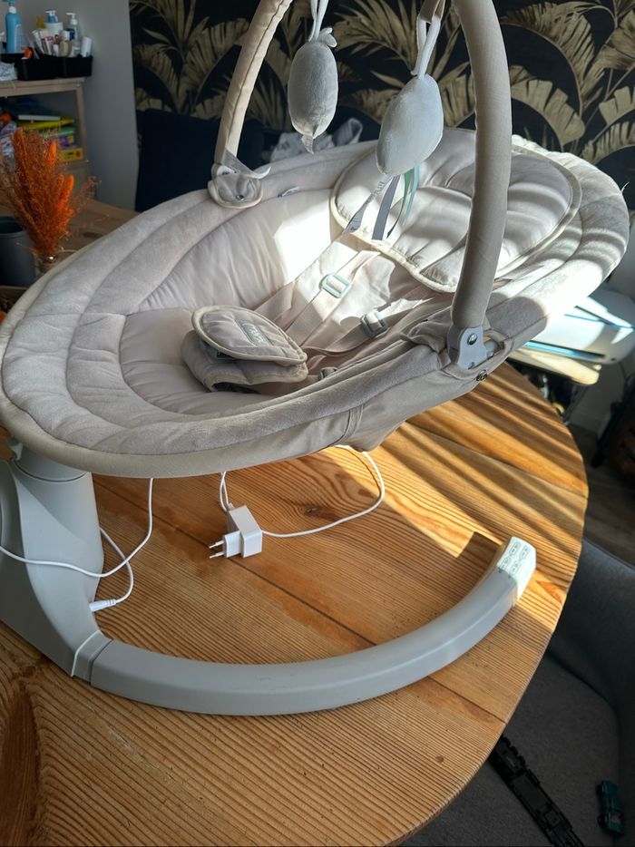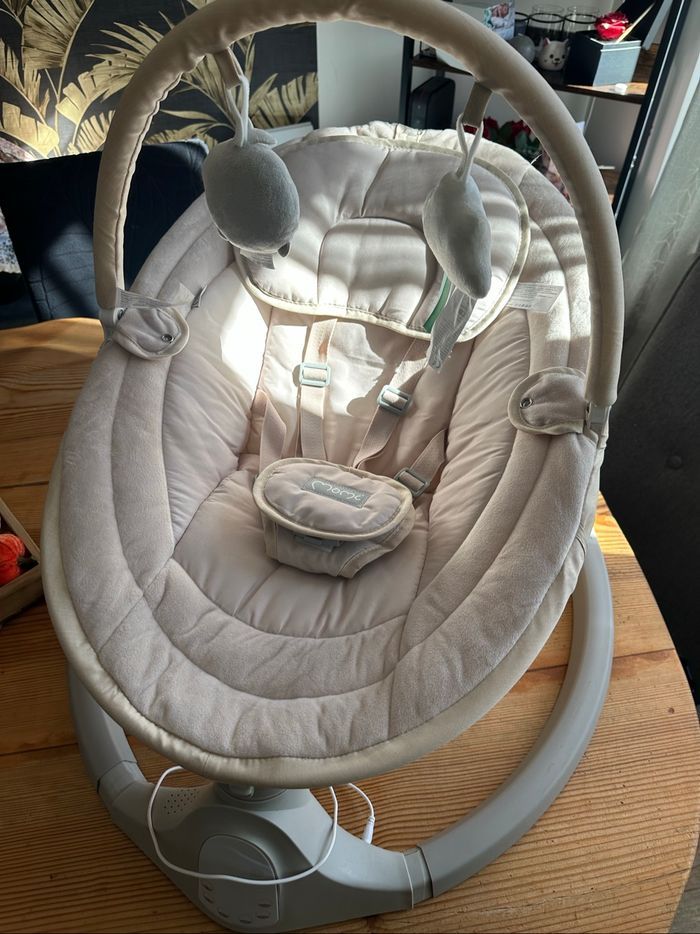 Balancelle bébé MoMi KENANI SAND – Très bon état Balancelle achetée neuve en juillet 2025, très peu utilisée (utilisée seulement quelques fois, comme neuve). Modèle MoMi KENANI SAND, coloris beige, avec harnais de sécurité 5 points, arche avec jouets, écran LED, télécommande, Bluetooth pour smartphone, et possibilité d’alimentation sur secteur ou piles. ✅ Fonctionne parfaitement ✅ Entretien soigné, tissu propre ✅ Convient dès la naissance jusqu’à 9 kg Prix neuf : 90 € Vendue :60€