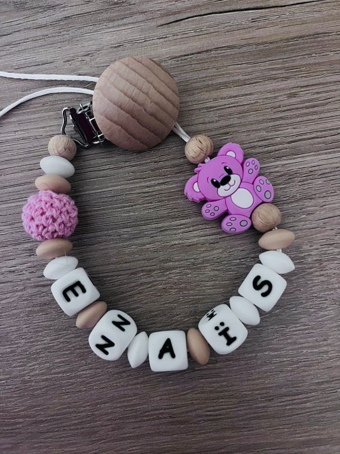 Pour passer la commande il suffit de valider le paiement sur l'annonce du modele désiré et de m'envoyez le prénom de l'enfant par message que je puisse réaliser votre commande. A partir de 2 articles vous bénéficiez de 5% de réduction. Réalisation dans la journée l'adaptateur tétine mam et en supplément à 1€ Si vous souhaitez quelque chose en particulier n’hésitez pas à m’envoyer un message qu’on voit ça ensemble 🥰 Une fois peut être envoyé avant l’envoi bien sûr ☺️