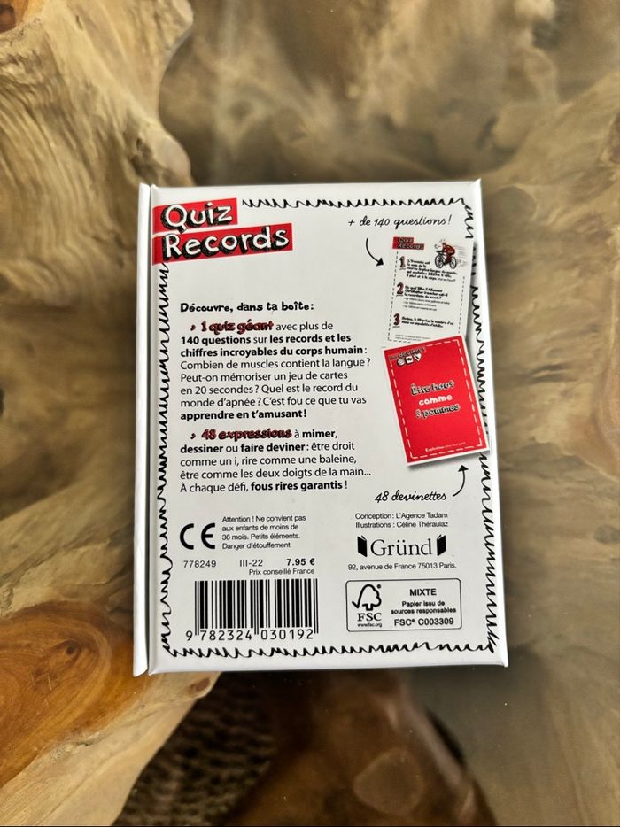 Jeu 1 boite = 2 jeux Quiz records 50 cartes de jeu sur les incroyables records du corps humain Quiz géant et expressions à faire deviner Grund Très bon état, peu servi N'hésitez pas à faire des lots 🍀 Réduction dès 2 articles Pour voir mes autres jouets : #jouetsludi2607 📩 Pas de remise en main propre