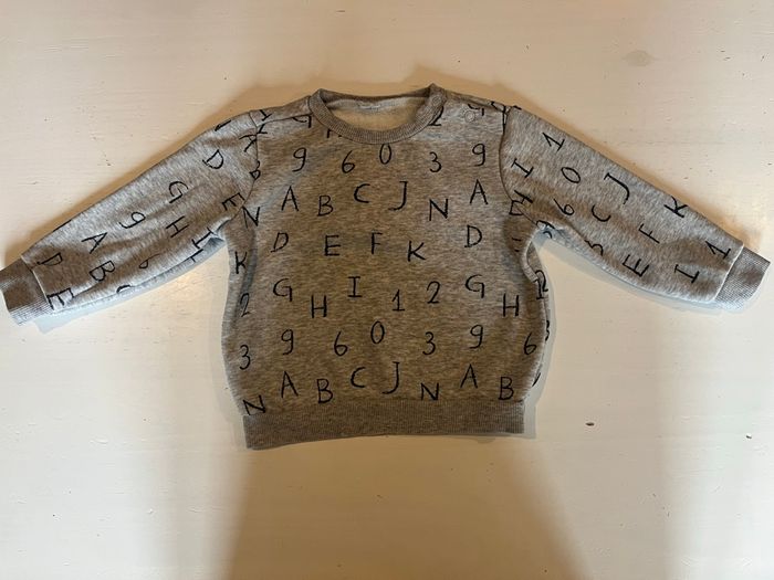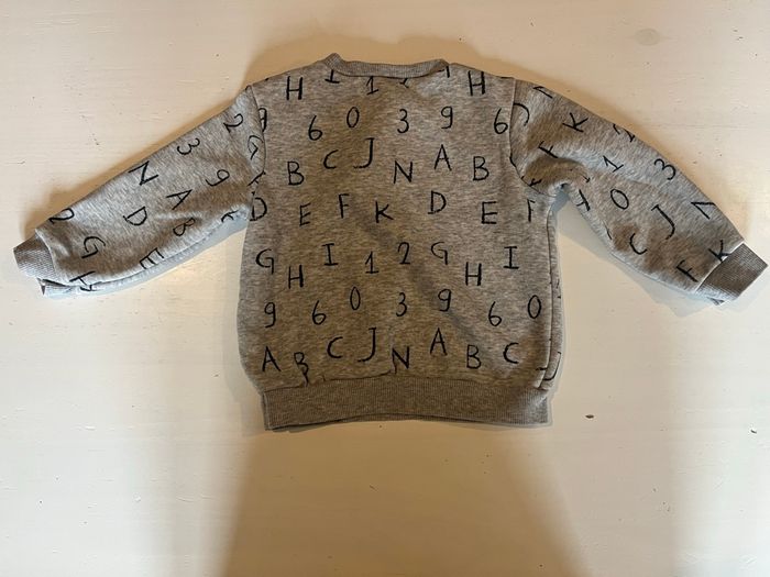 Sweat gris chiffres et lettre Étiquette couper mais taille 2ans