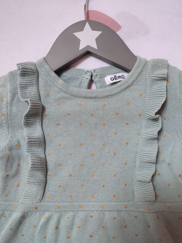🌸 Robe couleur vert d'eau avec de jolis petits pois dorés.
